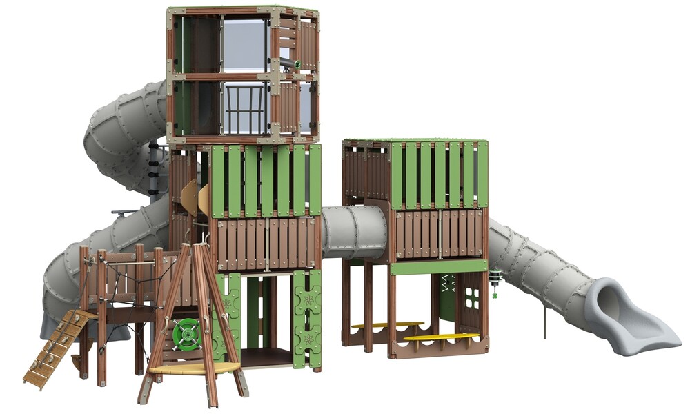 ручки , заглушки , клееный брус , краска , ламинированная ФСФ фанера , металл , оцинкованный крепеж , ФСФ фанера , HPL , горка-тонннель