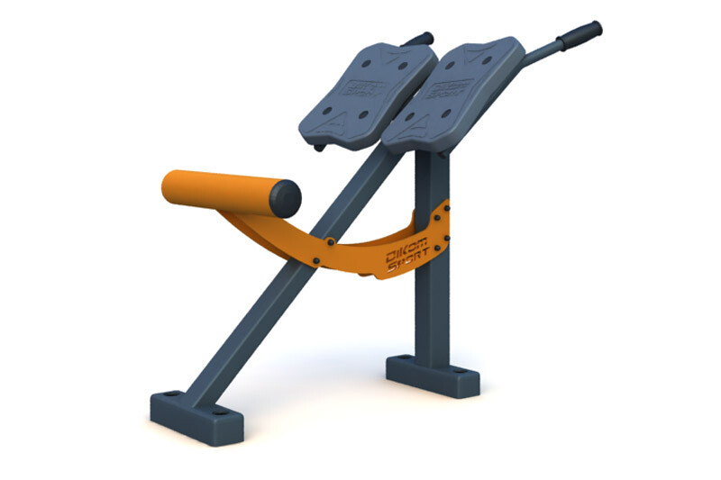 Гиперэкстензия (выпрямление верхней части корпуса при неподвижном тазе) – одно из наиболее эффективных упражнений на развитие мышц спины поясничного отдела. Для занятий необходимо разместится на тренажёре лежа лицом вниз. Удерживаясь ногами за горизонтальную перекладину, разместить бедра на сидениях. Тренировка мышц происходит при периодическом поднимании туловища в вертикальное положение. Конструктивно тренажёр должен быть выполнен в виде цельнометаллических наклонной и нижней горизонтальных балок, соединенных между двумя вертикальными стойками под острым углом, сидений, выполняющих роль упора для бедер при выполнении упражнений и расположенных в верхней части малой стойки, и перекладины для фиксирования ног в статичном положении. Кинематическая компоновка предотвращает защемления частей тела между стационарными узлами тренажёра. Балки изготовлены из трубы квадратного сечения с толщиной стенки 2мм. Основания изготовлены из листового металла толщиной 4 мм. Спинки изготовлены из термостойкого полиэтилена. Кинематическая компоновка предотвращает защемления частей тела между стационарными узлами тренажёра. Тренажёр предназначен для пользователей возраста от 14-ти лет. Тренажёр соответствует требованиям современного дизайна, функционально направлен на физическое развитие, отвечает требованиям безопасности пользователя, заложенных в ГОСТах РФ.