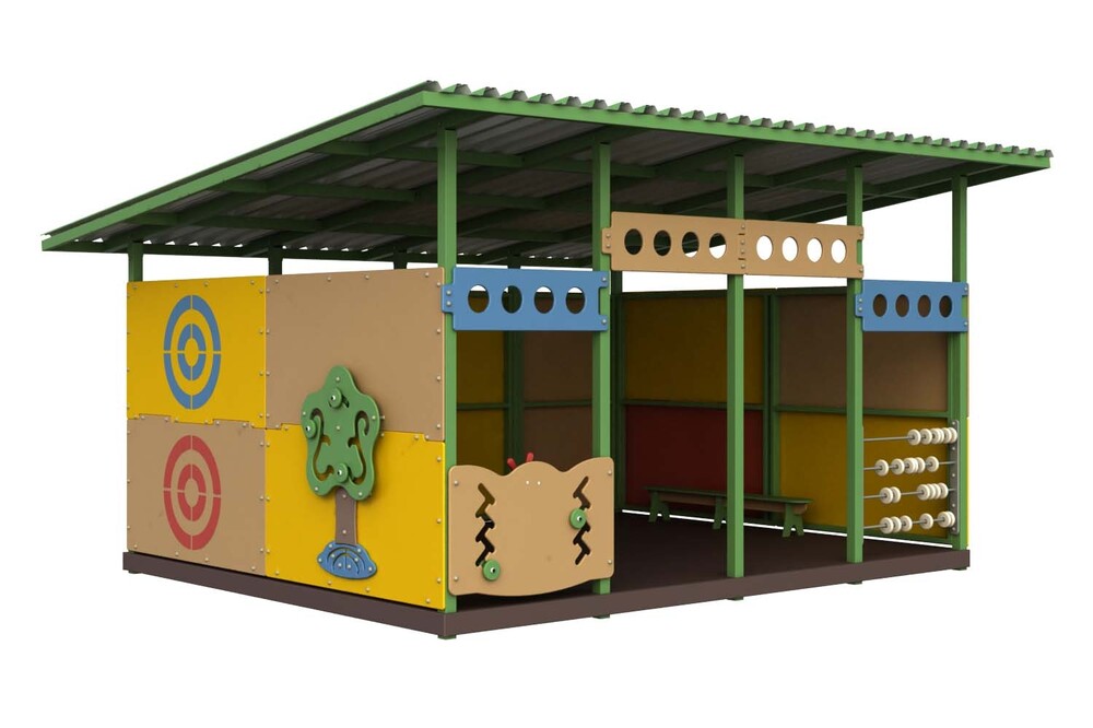 Теневой навес (20м2) с игровыми элементами на болтовом соединении "Арифметика" ТН-1.25